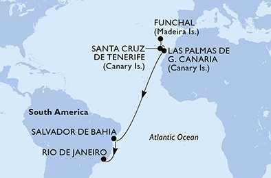 Portugalsko, Španělsko, Brazílie z Funchalu na lodi MSC Virtuosa, plavba s bonusem