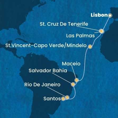 Portugalsko, Španělsko, Kapverdy, Brazílie z Lisabonu na lodi Costa Diadema