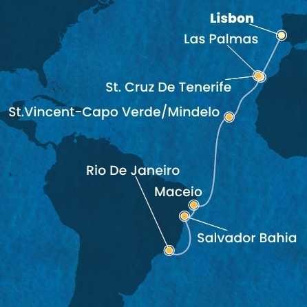 Portugalsko, Španělsko, Kapverdy, Brazílie z Lisabonu na lodi Costa Diadema
