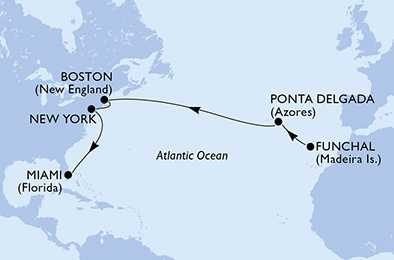 | Den 4 | Ponta Delgada, Azorské ostrovy, (připlutí: 00:01 | odplutí: 19:00) |