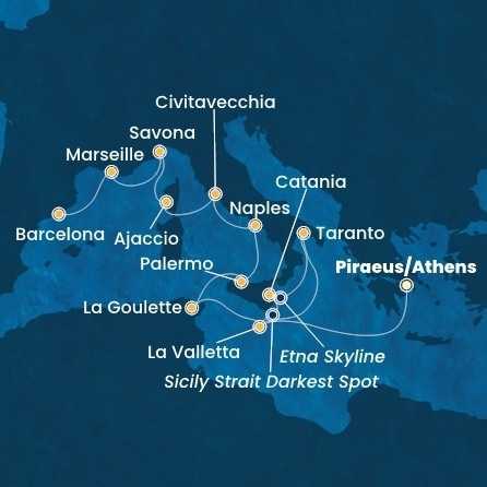 Řecko, Malta, Itálie, Tunisko, Francie, Španělsko z Pirea na lodi Costa Fascinosa