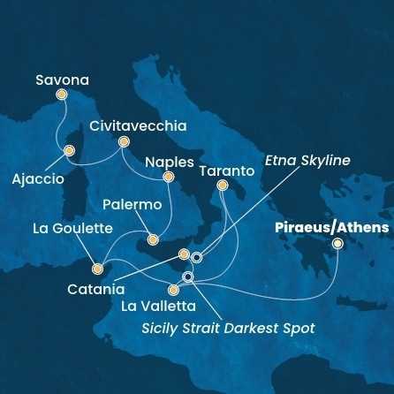 Řecko, Malta, Itálie, Tunisko, Francie z Pirea na lodi Costa Fascinosa