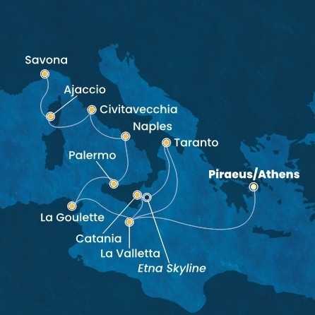 Řecko, Malta, Itálie, Tunisko, Francie z Pirea na lodi Costa Fascinosa
