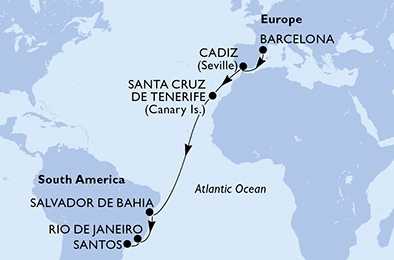 | Den 12 | Salvador, Brazílie, (připlutí: 08:00 | odplutí: 15:00) |