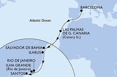 | Den 12 | Ilheus, Brazílie, (připlutí: 08:00 | odplutí: 18:00) |