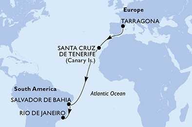 Španělsko, Brazílie z Tarragony na lodi MSC Divina