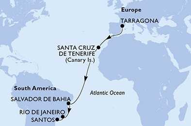 Španělsko, Brazílie z Tarragony na lodi MSC Divina, plavba s bonusem