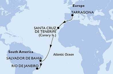 Španělsko, Brazílie z Tarragony na lodi MSC Divina, plavba s bonusem