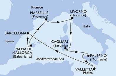Španělsko, Francie, Itálie, Malta z Barcelony na lodi MSC Splendida
