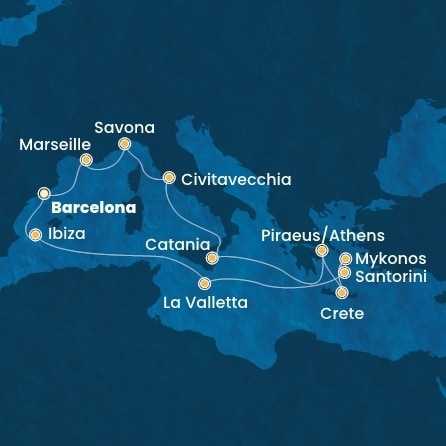Španělsko, Francie, Itálie, Řecko, Malta z Barcelony na lodi Costa Fascinosa