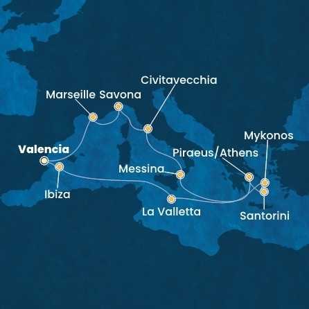 Španělsko, Francie, Itálie, Řecko, Malta z Valencie na lodi Costa Serena