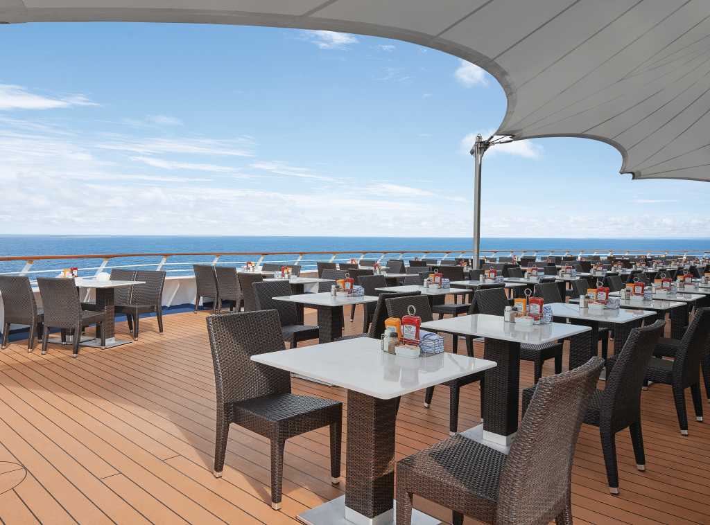 Restaurace a bary12 restaurací a 12 barů Cagney's Steakhouse, francouzská restaurace Le Bistro, italská restaurace Il Adagio Garden Café s rodinnými menu, které obsahují i dětské porce, cukrárna Carlo's Bake Shop Bar Kapitána Cooka, bar a diskotéka Dazzles Nightclub, Longboard Bar s živým vysíláním, sportovními událostmi i vynikajícím občerstvenímZábavaDivadlo Stardust Kasino, videoherna Butiky Internetová kavárna, knihovna 3 společenské místnostiSport a odpočinekDva venkovní bazény, 5 vířivek Sportovní hřiště, běžecká dráha Fitness centrum Wellness centrum Body Waves a salón krásy Dva golfové trenažéryPro dětiDětský areál s filmy, počítači, tvořivou dílnou a odpočinkovou zónou Areál pro dospívající Zone s herními konzolemi, televizí, stolním hokejem a diskotékou Dětský bazén s klouzačkami, brouzdalištěm a dětskou vířivkou