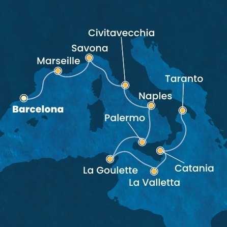Španělsko, Francie, Itálie, Tunisko, Malta z Barcelony na lodi Costa Fascinosa