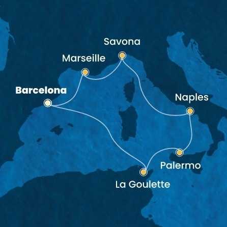 Španělsko, Francie, Itálie, Tunisko z Barcelony na lodi Costa Pacifica