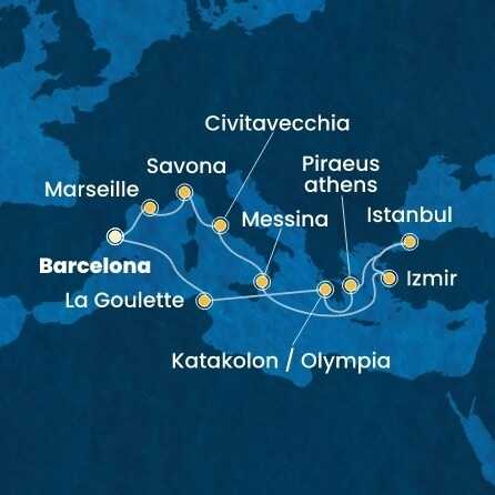 Španělsko, Francie, Itálie, Turecko, Řecko, Tunisko z Barcelony na lodi Costa Favolosa