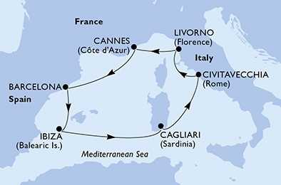 | Den 6 | Livorno, Itálie, (připlutí: 08:00 | odplutí: 18:00) |
