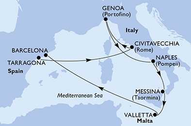 | Den 7 | Valletta, Malta, (připlutí: 08:00 | odplutí: 17:00) |