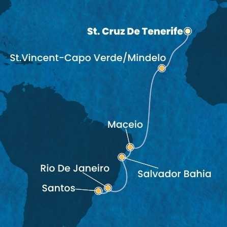 Španělsko, Kapverdy, Brazílie z Tenerife na lodi Costa Diadema