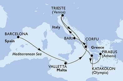 Španělsko, Malta, Řecko, Itálie z Barcelony na lodi MSC Fantasia