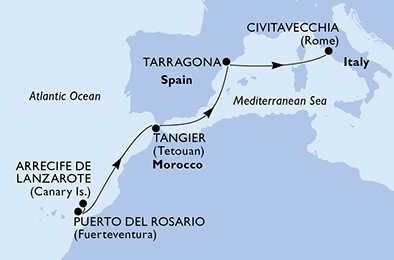 Španělsko, Maroko, Itálie z Lanzarote na lodi MSC Fantasia