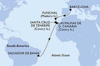 Španělsko, Portugalsko, Brazílie z Barcelony na lodi MSC Virtuosa