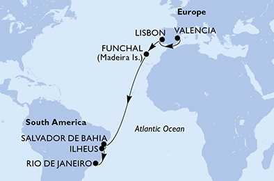 Španělsko, Portugalsko, Brazílie z Valencie na lodi MSC Musica