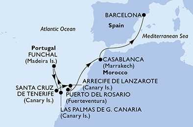 Španělsko, Portugalsko, Maroko z Las Palmas na lodi MSC Musica