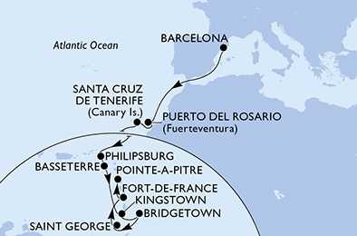 | Den 13 | Basseterre, Svatý Kryštof a Nevis, (připlutí: 07:00 | odplutí: 18:00) |