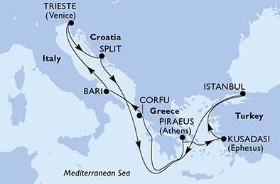 | Den 1 | Istanbul, Turecko, (připlutí: --:-- | odplutí: 23:00) |