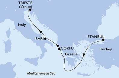 | Den 1 | Istanbul, Turecko, (připlutí: --:-- | odplutí: 23:00) |