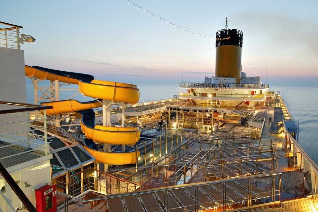 Costa Fortuna byla postavena v roce 2003 a její design je inspirován prvními zaoceánskými parníky. Nostalgii starých časů navozují i obrazy nejslavnějších mořeplaveb a dobové fotografie v interiéru lodi. Loď byla symbolicky postavená v legendárních loděnicích Janova Sestri Ponente a je sesterskou lodí Costa Magica. Ve vstupní hale, která má devět palub, se nachází 26 věrných modelů lodí společnosti Costa. Dvouposchoďový bufet restaurant Cristoforo Colombo nabízí jedinečný gurmánský zážitek. Příjemné večery můžete trávit v piano baru Conte Rosso. Na Costa Fortuna dále najdete 4 bazény, jeden z nich je zastřešený, vířivky a skluzavku, kasino, diskotéku, divadlo Rex 1932. Sportovně vyžít se můžete ve fitness centru, na běžecké dráze a multifunkčním hřišti. K relaxaci vybízí wellness centrum s lázeňskými procedurami a výhledem na moře. Výrobní cena Costa Fortuna byla přibližně 380 mil. USD.