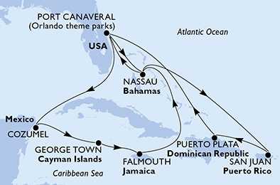| Den 1 | Port Canaveral (Orlando), USA, (připlutí: --:-- | odplutí: 17:00) |