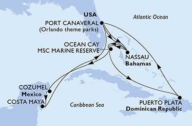 | Den 10 | Ocean Cay MSC Marine Reserve, Ocean Cay, (připlutí: 08:00 | odplutí: 18:00) |