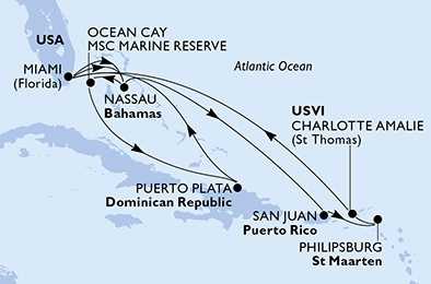 USA, Bahamy, Dominikánská republika, Svatý Martin z Miami na lodi MSC Meraviglia, plavba s bonusem