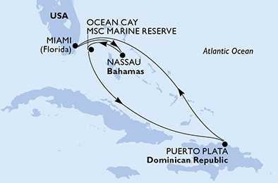 | Den 3 | Ocean Cay MSC Marine Reserve, Ocean Cay, (připlutí: 08:00 | odplutí: 18:00) |