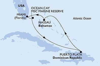| Den 2 | Ocean Cay MSC Marine Reserve, Ocean Cay, (připlutí: 08:00 | odplutí: 18:00) |