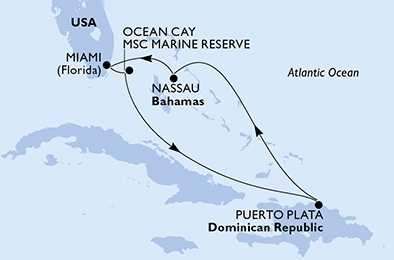 | Den 2 | Ocean Cay MSC Marine Reserve, Ocean Cay, (připlutí: 08:00 | odplutí: 18:00) |