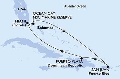 | Den 2 | Ocean Cay MSC Marine Reserve, Ocean Cay, (připlutí: 08:00 | odplutí: 18:00) |