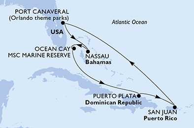| Den 3 | Ocean Cay MSC Marine Reserve, Ocean Cay, (připlutí: 08:00 | odplutí: 18:00) |