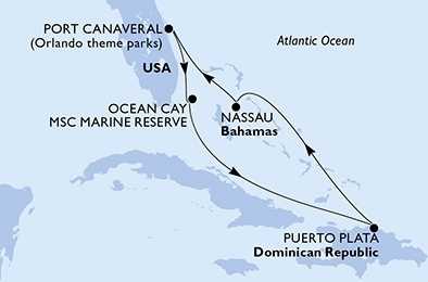 USA, Bahamy, Dominikánská republika z Port Canaveralu na lodi MSC Grandiosa