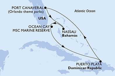 | Den 3 | Ocean Cay MSC Marine Reserve, Ocean Cay, (připlutí: 08:00 | odplutí: 18:00) |