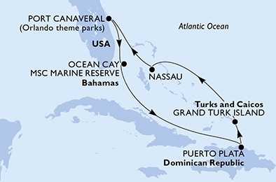| Den 2 | Ocean Cay MSC Marine Reserve, Ocean Cay, (připlutí: 08:00 | odplutí: 18:00) |