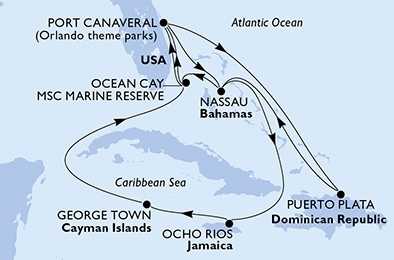 | Den 7 | Ocean Cay MSC Marine Reserve, Ocean Cay, (připlutí: 08:00 | odplutí: 18:00) |