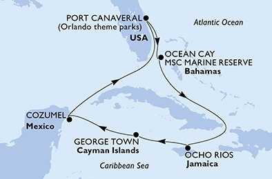 | Den 2 | Ocean Cay MSC Marine Reserve, Ocean Cay, (připlutí: 08:00 | odplutí: 18:00) |