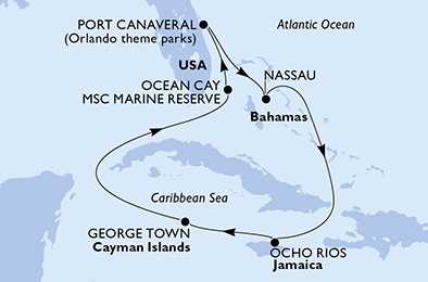 | Den 7 | Ocean Cay MSC Marine Reserve, Ocean Cay, (připlutí: 08:00 | odplutí: 18:00) |