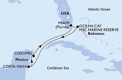 | Den 2 | Ocean Cay MSC Marine Reserve, Ocean Cay, (připlutí: 08:00 | odplutí: 18:00) |