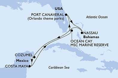 | Den 7 | Ocean Cay MSC Marine Reserve, Ocean Cay, (připlutí: 07:00 | odplutí: 18:00) |
