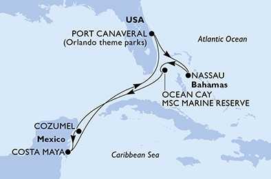 | Den 3 | Ocean Cay MSC Marine Reserve, Ocean Cay, (připlutí: 08:00 | odplutí: 18:00) |