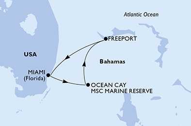 | Den 2 | Ocean Cay MSC Marine Reserve, Ocean Cay, (připlutí: 08:00 | odplutí: 18:00) |