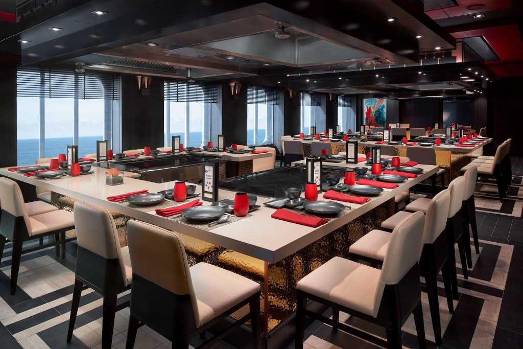 Ocean Blue restaurace, Shanghai’s Noodle Bar, Wasabi Sushi Bar, italská restaurace La Cucina, francouzská restaurace Le Bistro, japonská restaurace Teppanyaki